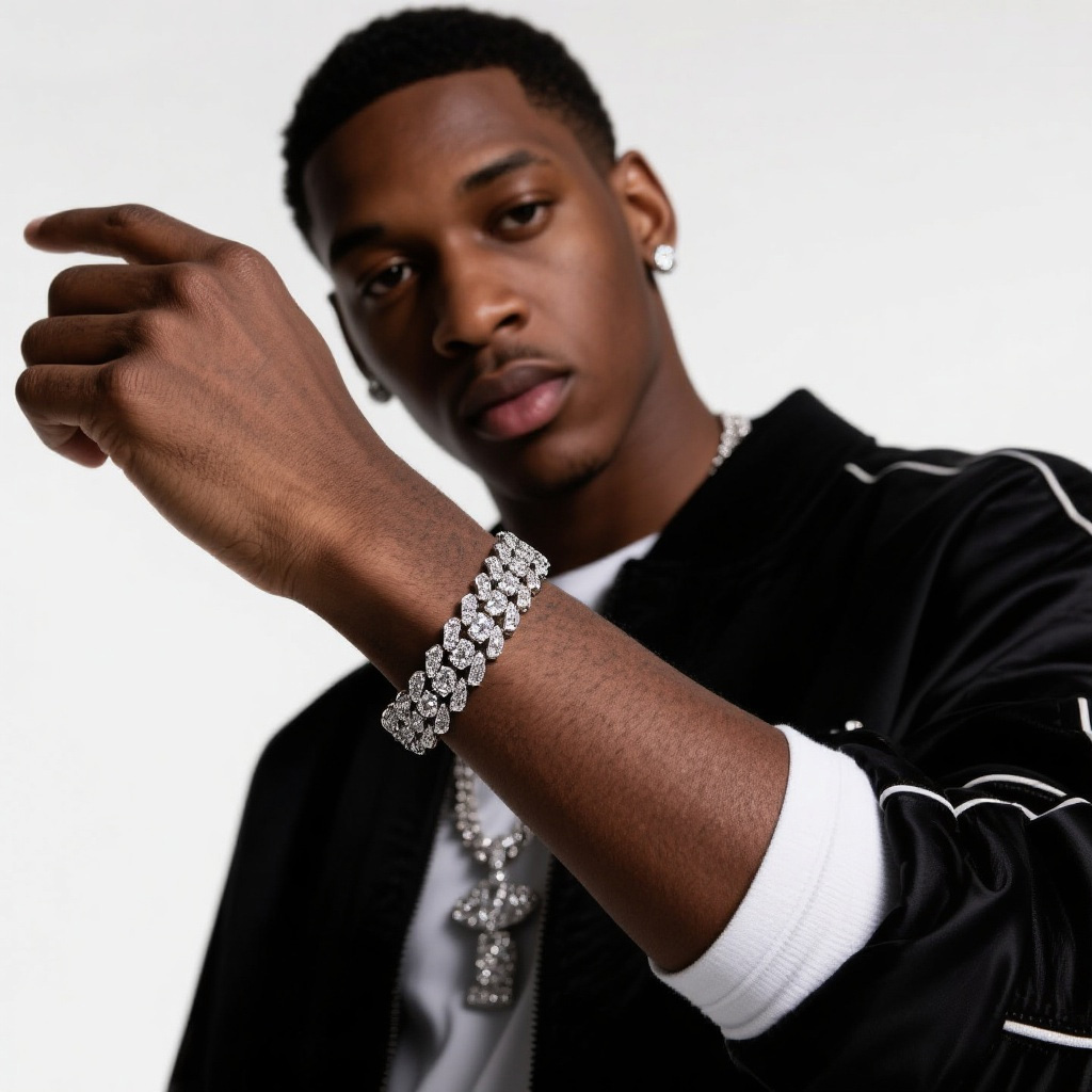 Hip-Hop Style Silver-Set Moissanite Bracelet – Unlock a New Level of Street Cool!